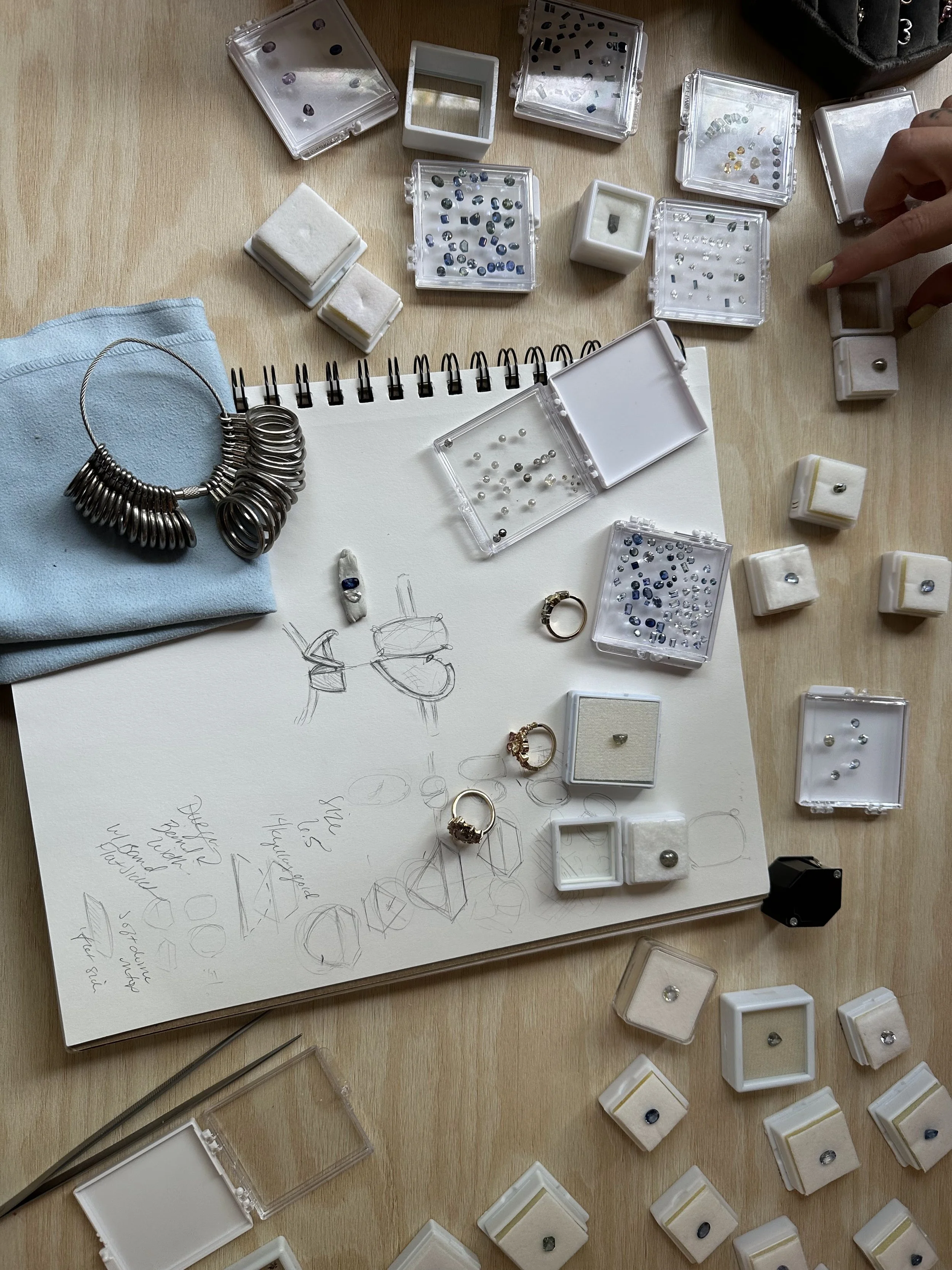 For more detailed information see this CUSTOM DESIGN GUIDE on Dallas’s website. To make an appointment please reach out to diana@thistleandbess.com (please do not use form on Dallas Maynard’s website for appointments to take place at Thistle & Bess)